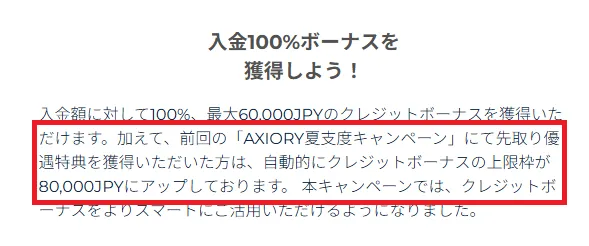 AXIORY | 100%入金ボーナス: 最大10万円 | 取引量達成ごとに 2,000~4,000円出金可能 |